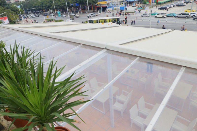 單電機天幕至寬可做4米,至長可做6米,適合中小型玻璃頂遮陽。